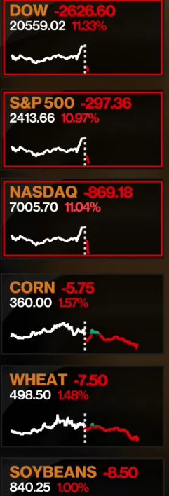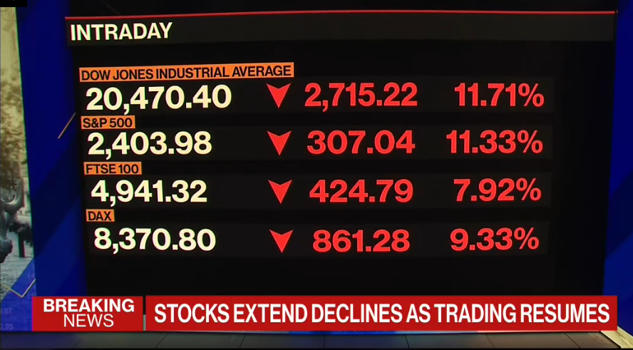 - Contracts on the S&P 500, Nasdaq 100 and Dow Jones Industrial Average all sank almost 5%, tripping their market circuit breakers; ETFs in premarket show even bigger losses.