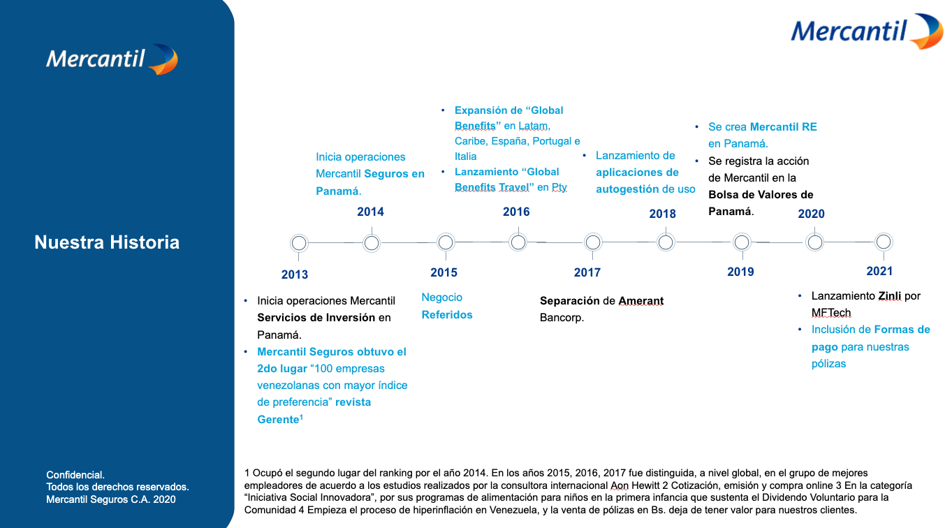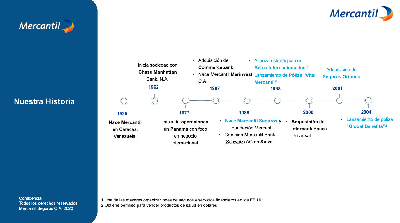 Mercantil Seguros es hoy líder en Venezuela. El propósito es entender las necesidades de nuestros asegurados, y enfocarnos en diseñar productos para ellos, con el respaldo de un equipo altamente profesional y comprometido, e invirtiendo en la transformación digital, garantizando la calidad del servicio a nuestros clientes.