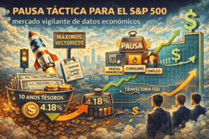 El impulso que dejó al S&P 500 a un paso de máximos históricos entra en una fase de pausa táctica: tras dos ruedas muy fuertes, el mercado luce más sensible a la dinámica de tasas que al flujo de resultados. Con los inversores esperando el arranque de una batería de datos —comenzando por ventas minoristas y luego consumo, empleo e inflación— el “pricing” de la trayectoria de la Fed vuelve a ser el principal catalizador. En ese contexto, los Treasuries muestran un tono más firme, con el 10 años bajando hacia 4,18%, mientras el dólar se estabiliza tras dos sesiones de retroceso, reordenando el liderazgo dentro de renta variable y obligando a una lectura más selectiva del rally.
