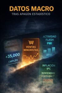 La atención se concentró en la batería de datos macroeconómicos que volvió a ganar relevancia tras el apagón estadístico asociado al cierre parcial del gobierno federal. En particular, el mercado siguió de cerca el informe de empleo (nóminas no agrícolas), cuyo consenso se ubicó en aproximadamente +35.000 puestos y que incorpora la lectura de octubre no publicada, lo que vuelve la interpretación del dato más compleja. En la misma sesión se esperaron ventas minoristas y los PMIs preliminares (“flash”) de actividad, y quedó en el radar la publicación del IPC de noviembre con la posibilidad de incluir también la lectura de octubre.