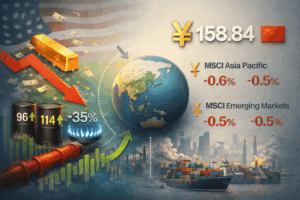En Asia, las caídas son algo más moderadas, pero el deterioro del entorno global también se siente. El MSCI Asia Pacific pierde 0,6% y el MSCI Emerging Markets 0,5%, con la región particularmente vulnerable al impacto indirecto del conflicto vía energía, comercio y tasas americanas. El yen se deprecia hasta 158,84 por dólar y el yuan offshore también cede, una señal de que el dólar sigue dominando la ecuación de flujos. La exposición de Asia a costos energéticos elevados y a cadenas de suministro más frágiles deja a la región sensible a un conflicto más largo, incluso si el shock inmediato se concentra en Medio Oriente y Europa.