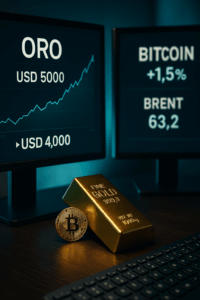 Tanto el oro como Bitcoin consolidan su papel como activos alternativos relevantes. El oro se mantiene por encima de USD 4.000, con una trayectoria proyectada hacia USD 5.000 para mediados de 2026, mientras que Bitcoin avanza más de 1,5% en la jornada.El Brent sube hacia USD 63,2 por barril, recuperando parte del terreno perdido recientemente.