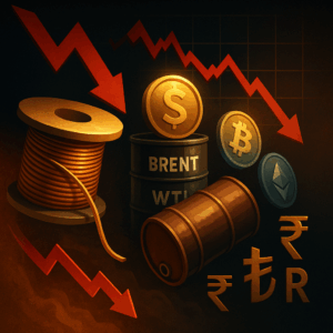 El sentimiento de aversión al riesgo se trasladó a las materias primas.El cobre retrocedió más de 2 %, mientras el Brent se mantuvo cerca de USD 64/barril.El WTI cayó 1,4 % hasta USD 60,18. El oro cedió 0,3 %, acercándose a USD 3.987/oz. El fortalecimiento del dólar presionó adicionalmente a las divisas emergentes. En criptomonedas, Bitcoin y Ether retrocedieron 2,7 %, continuando una corrección generalizada del segmento digital.Bitcoin se acerca a los mínimos de octubre, según el informe adjunto.
